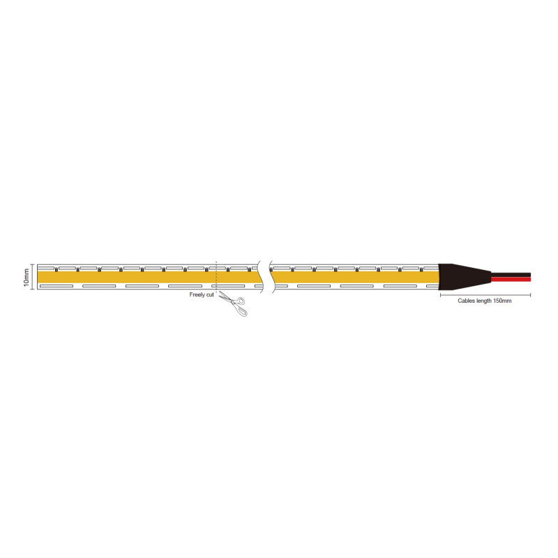 LED pás 10W/m 4000K IP20 12V COB v neutrálnej farbe svetla, voľne strihateľný na potrebnú dĺžku, vhodný pre osvetlenie interiérov. Balenie 50m na rolke.