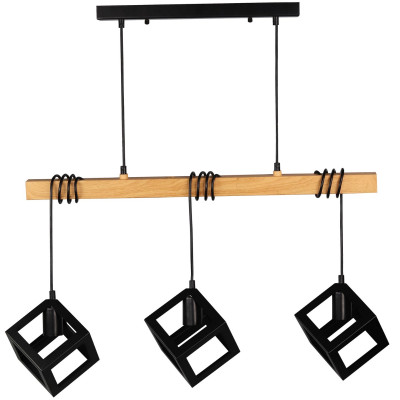 Svietidlo závesné VIGO 3xE27 s výkonom max. 3x20W LED, krytím IP20, v čiernom farebnom prevedení v kombinácií s drevom, vhodné pre osvetlenie interiérov.