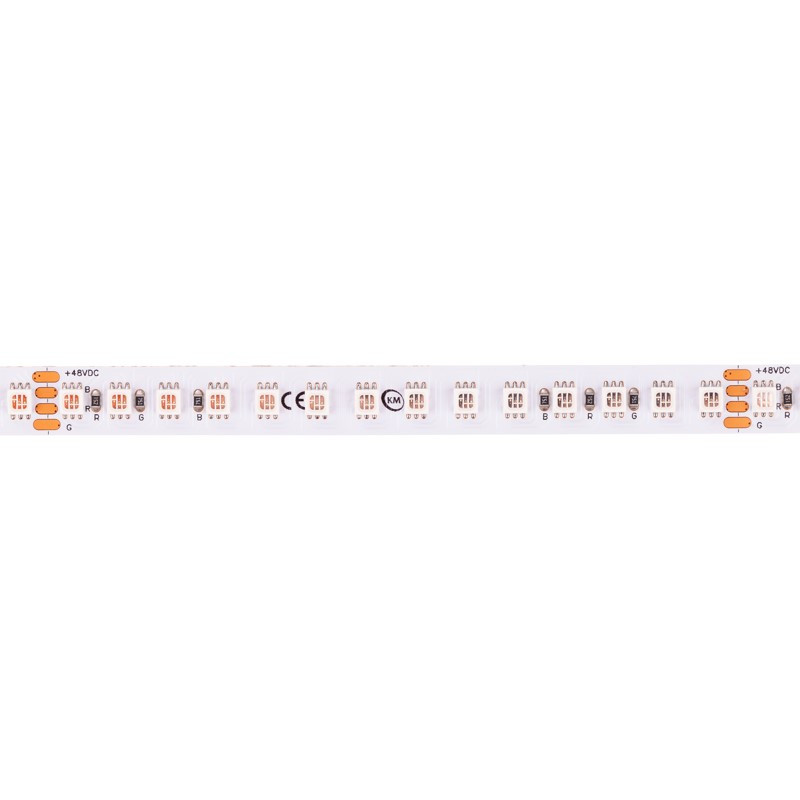 LED pás 10W/m RGB IP20 48V s možnosťou nastavenia farby svetla, 140ks LED/m SMD3535, so svietivosťou 530lm/m, s modulom 10cm, rozmer 10x2,5x50000mm.