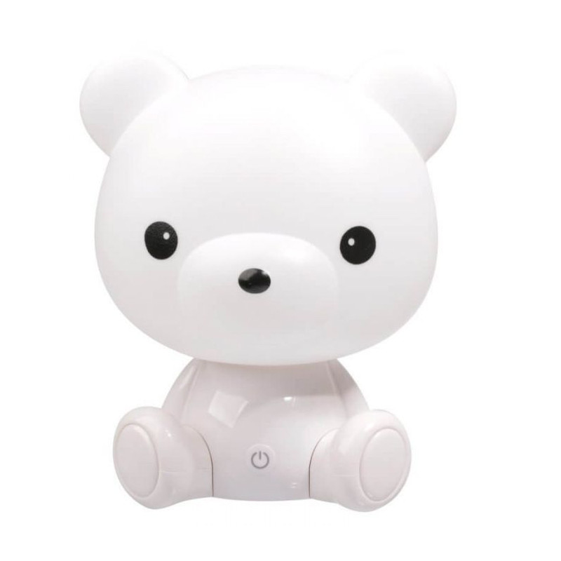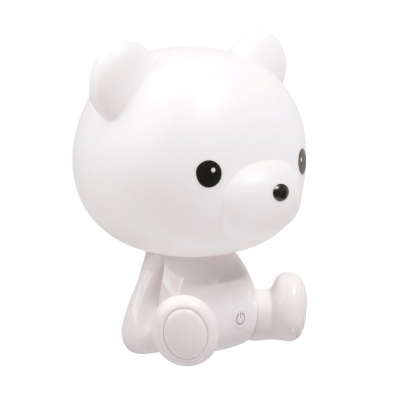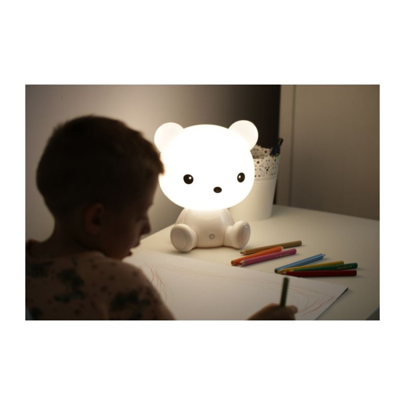 Detská lampa MACO 312952 BL SILIKON LED v bielej farbe s výkonom 0,8W, farbou svetla teplá biela 3000K+RGB prepínateľnou dotykom ruky, nabíjateľná s napájacím napätím 5V DC, s krytím IP20 vhodná na osvetlenie detských interiérov.