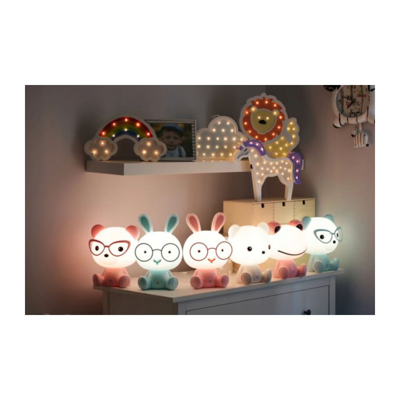 LED detská lampa RABBIT RGB + W Svietidlo je dokonalou dekoráciou do detskej izby. Má dotykový spínač a ovládač úrovne a farieb. Osemúrovňové nastavenie umožňuje nastaviť jas a farbu svetla. Doba svietenia: Približne 4 hodiny pri 100% bielom svetle (110 lm) Približne 8 hodín pri 50 % bielom svetle (55 lm) Doba nabíjania približne 2,5 hodiny. Odporúčané napájanie 5V, 1A - zdroj nie je súčasťou balenia. Výrobok je určený na dekoratívne osvetlenie. Nevhodné na osvetlenie miestností.