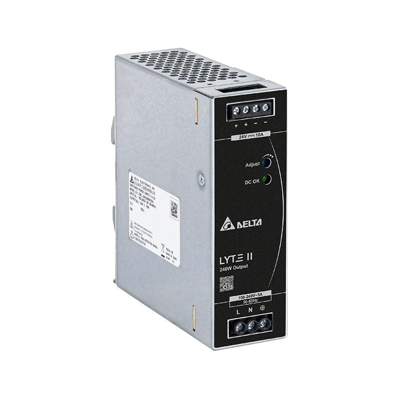 Napájací zdroj DRL-24V240W1AA, s výkonom 240W výstupným napätím 24V, napájacím napätím 85-264V 47-63Hz krytím IP20.