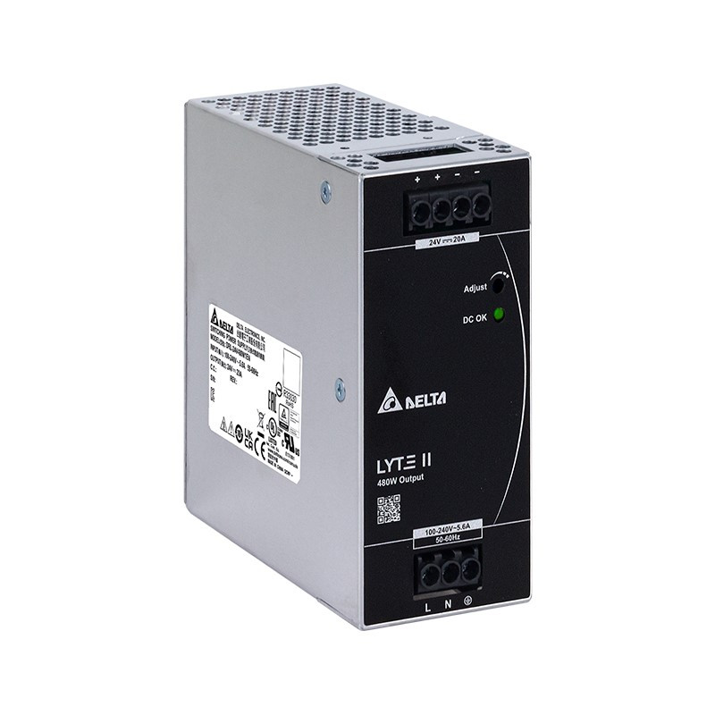 Napájací zdroj DRL-24V480W1AA, s výkonom 480W výstupným napätím 24V, napájacím napätím 85-264V 47-63Hz krytím IP20.