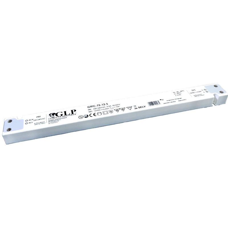 Napájací zdroj 32620075 GTPC-75-24-S, inštalačný 75W slim, s konštantným napätím 24V DC na výstupe, vhodný pre napájanie LED aplikácií