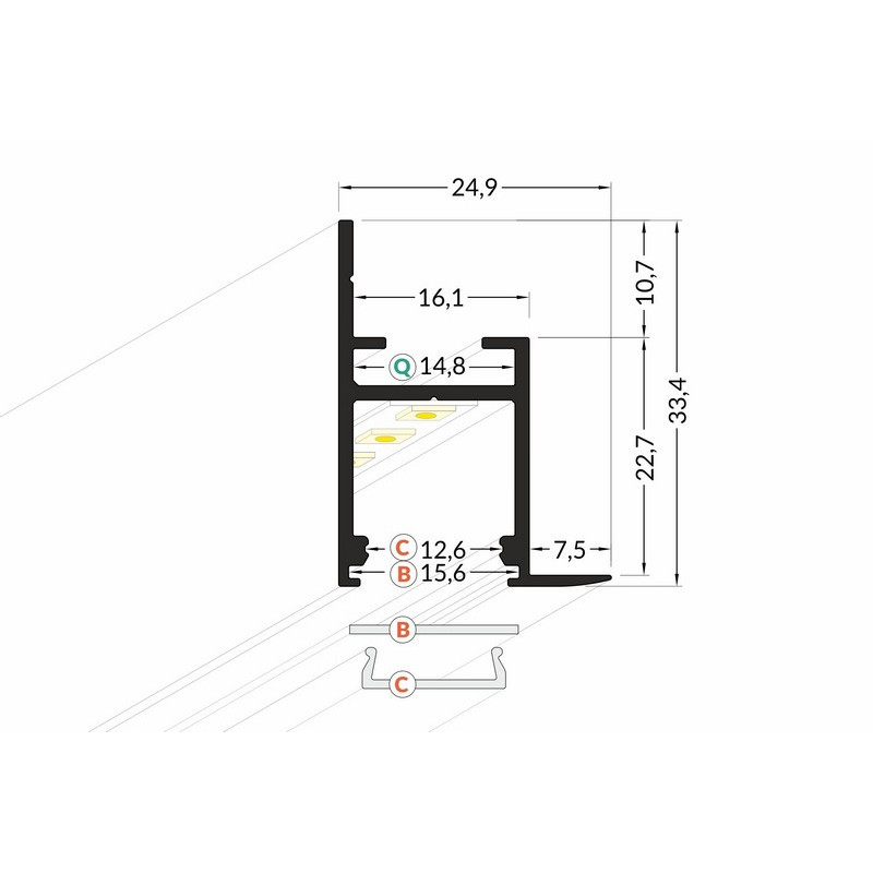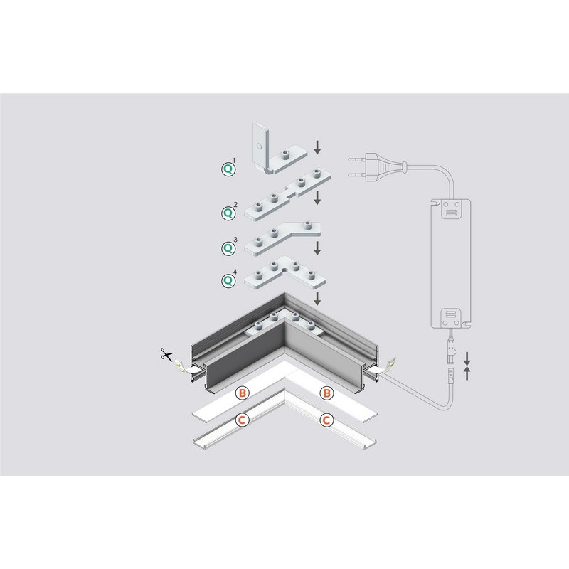 Lišta KM5-B 1M, 40050101, strieborná hliníková, určená pre podsvietenie sadrokartónov, kazetových stropov a stien