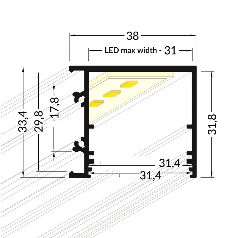 Lišta KM73-C 2M, 40730202, čierna hliníková, určená pre povrchovú montáž