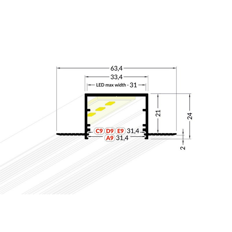 Lišta KM75-B 1M, 40750101, biela hliníková, určená pre zapustenú montáž