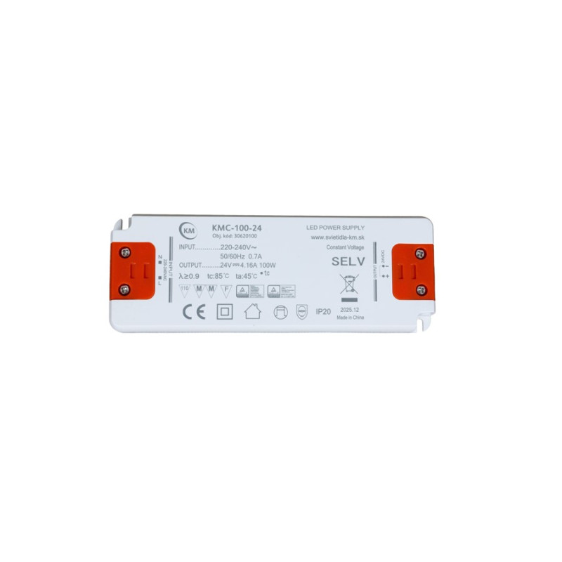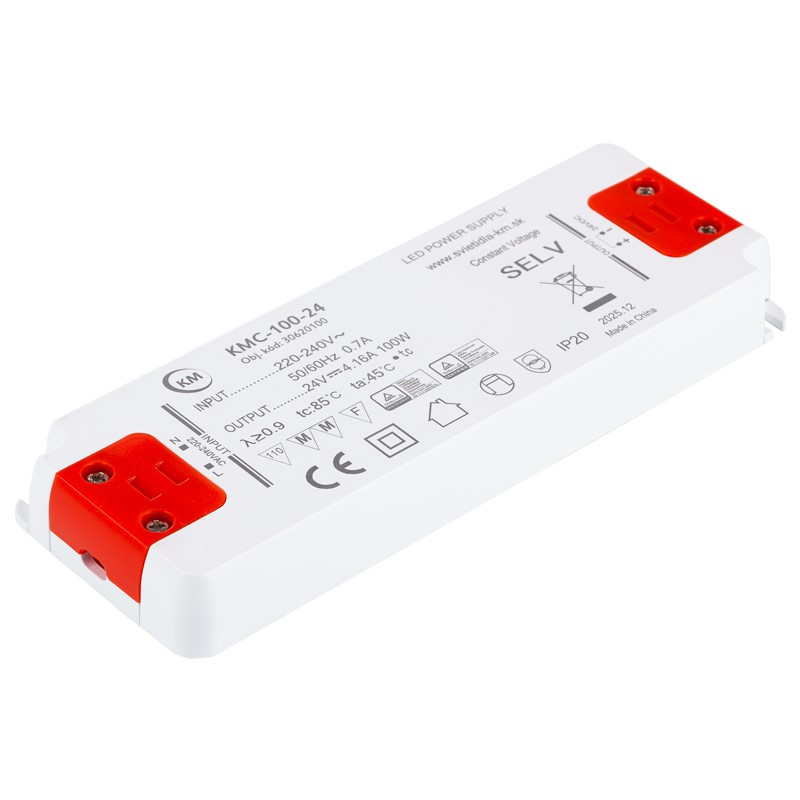 Napájací zdroj 30620100 KMC-100-24, s výkonom 100W, konštantným výstupným napätím 24V v krytí IP20.