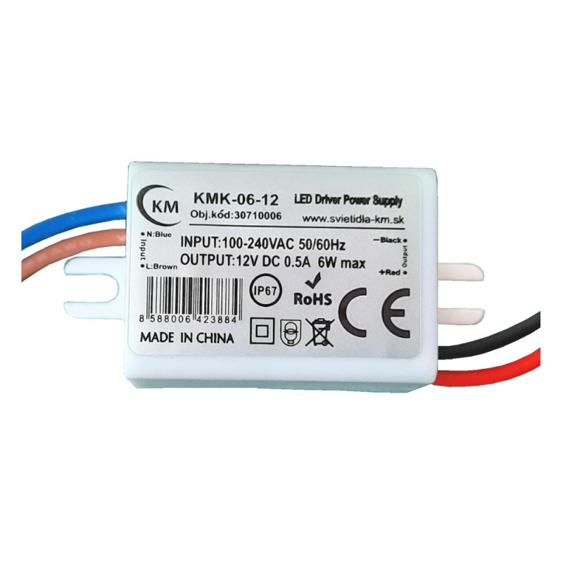 Napájací zdroj KMK-06-24, s výkonom 6W a konštantným výstupným napätím 24V v krytí IP67.