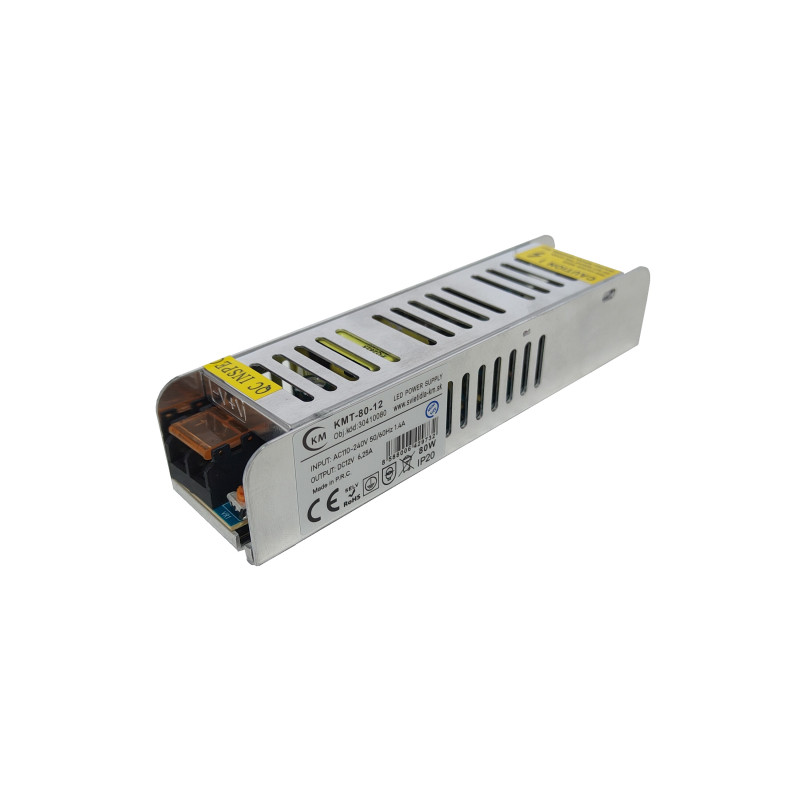 Napájací zdroj KMT-80-12, s výkonom 80W konštantným výstupným napätím 12V v krytí IP20.