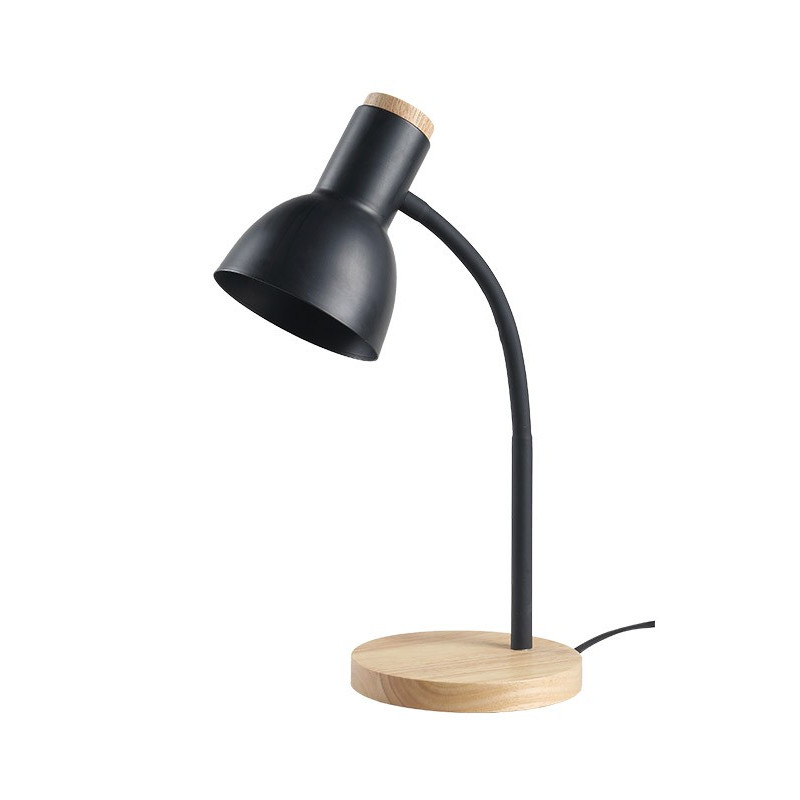 Dekoratívna STOLNÁ LAMPA s dreveným podstavcom a bežnou objímkou E27, dodávaná bez žiarovky, v čierno / drevenom farebnom prevedení, ktorá zvýrazňuje atmosféru na pracovných stoloch vo vašej domácnosti a kancelárii.