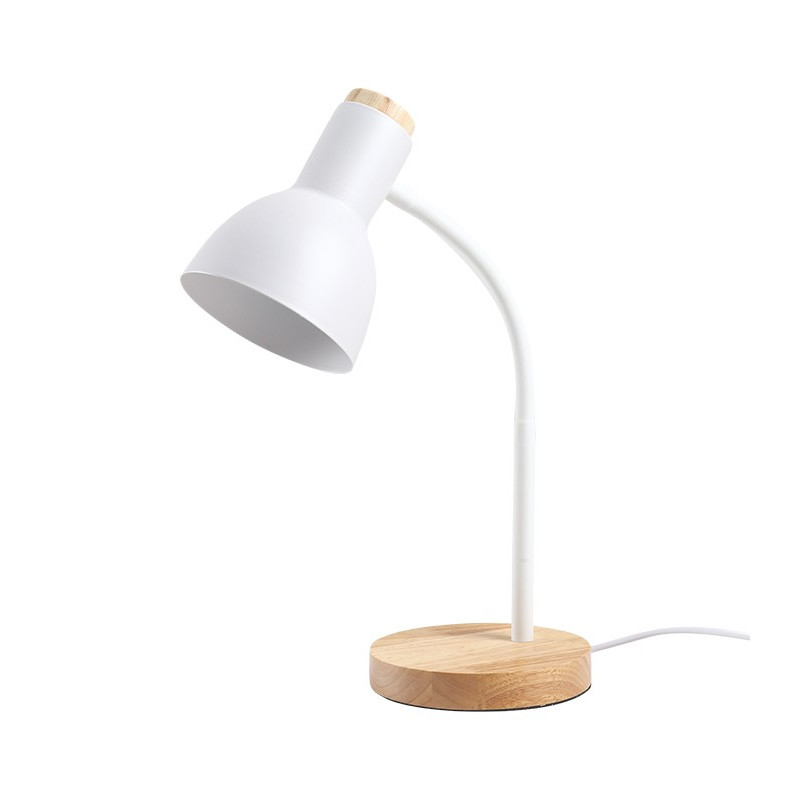 Dekoratívna STOLNÁ LAMPA s dreveným podstavcom a bežnou objímkou E27, dodávaná bez žiarovky, v bielo / drevenom farebnom prevedení, ktorá zvýrazňuje atmosféru na pracovných stoloch vo vašej domácnosti a kancelárii.