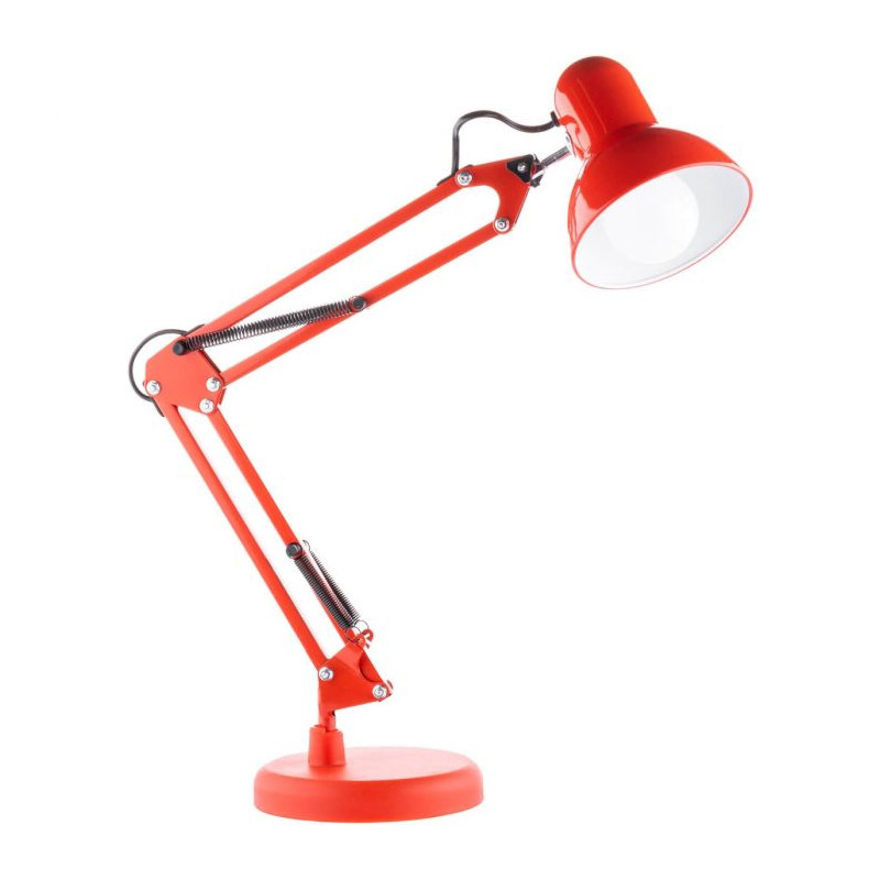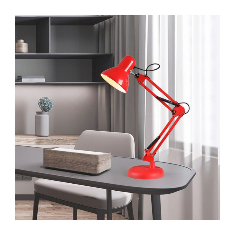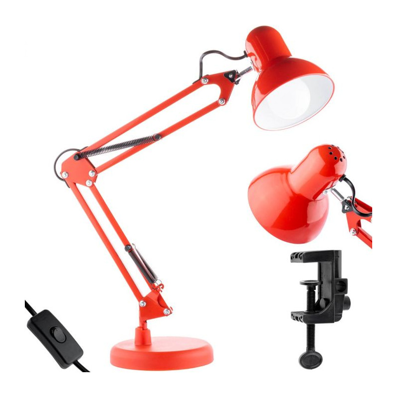 Stolíková lampa na písací stôl TOBI E27 červená + stolný držiak Stolná lampa na písací stôl TOBI v červenej farbe je kombináciou moderného štýlu a klasickej ergonómie. Vďaka priloženému držiaku ju môžeme priskrutkovať na hranu pracovnej dosky rôznych hrúbok a súčasťou je aj klasická podstava, vďaka ktorej je možné svietidlo umiestniť kamkoľvek. Vďaka ohybnému, pohyblivému ramenu tejto stolnej lampy, ktorým je možné nastaviť ľubovoľný uhol sklonu, vieme nastaviť uhol dopadajúceho svetla, čo nám umožní lepšie osvetliť pracovisko pri stole. Stolná lampa TOBI je vybavená klasickým závitom E27 , ktorý umožňuje inštaláciu najobľúbenejších žiaroviek rôznych farieb. Svietidlo je napájané sieťovým napätím 230V a má vypínač na kábly . HLAVNÉ VÝHODY PRODUKTU: • Elegantný, štýlový vzhľad • Jednoduchá inštalácia a rýchla výmena svetelného zdroja. • Výrobok je vyrobený z najkvalitnejších materiálov - kovu a plastu • Luxusný a pôsobivý dizajn • Široká škála aplikácií svietidiel v rôznych miestnostiach Lampa TOBI je dokonalým produktom pre každého, kto si chce vyzdobiť svoj byt jedinečným a netradičným doplnkom, ktorý podčiarkne originálny a avantgardný dizajn interiéru. MOŽNOSTI APLIKÁCIE: • Kancelária • Detská izba • Pracovný stôl POZOR! Dodávaná bez zdroja svetla.