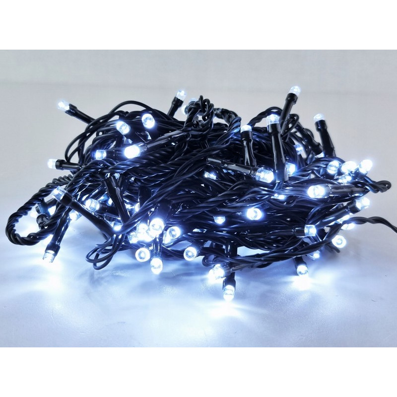 Vianočná reťaz 660-21-LED RC CW 10M s dĺžkou 10m+1,5m napájací kábel vo farebnom prevedení zelená, obsahuje 200ks LED vo farbe svetla studená biela, určená pre dekoračné osvetlenie interiérov aj exteriérov s krytím IP44, napájacím napätím 220-240V a prepojovacím konektorom pre spojenie max. troch reťazí do jedného celku. Reťaz je možné ovládať diaľkovým ovládačom, obsahuje aj timer pre režim automatického vypnutia a zapnutia.