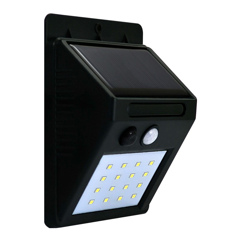 SOLUX-W je solárny vodotesný reflektor IP44 vybavený LED diódami SMD, PIR a fotosenzorom. Transparentný polykarbonátový difúzor s hrúbkou 4 mm. Polykryštalický polykarbonátový panel 5,5V - 1,65W. Batéria: 18650 3,7V 1850mAh. Doba nabíjania: 8-10h Doba svietenia: 8-12h Funkcia: fotosenzor + PIR senzor. Režim senzora 1: V tme bude svetlo svietiť nepretržite. Režim senzora 2: V tme bude slabé svetlo a automaticky sa zapne silné svetlo na 15 sekúnd, keď sa zaznamená pohyb ľudí a potom sa vráti späť na slabé svetlo. Režim svetelného senzora 3: V tme sa svetlo automaticky zapne na 15 sekúnd, keď zaznamená pohyb ľudí, a potom sa vypne. - Detekčná vzdialenosť PIR senzora: 3-5m.