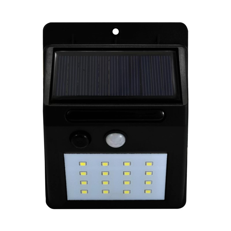 Solárne LED svietidlá série SOLIGHT s ABS telom a PMMA difúzorom ponúkajú svetelný výkon 440 lm a dlhú životnosť 30 000 hodín. Tento 3W model s farbou svetla 6 400 K (studená biela) a uhlom svetelného lúča 180° je určený pre osvetlenie exteriéru. - Fotovoltaický ETFE polykryštalický panel 5,5V. - Batéria: Li-ion 18650 3,7V 1800mAh - Doba nabíjania: 6h - Doba vybitia: 6-8h - Autonómia: 6-8h - Funkcia: fotosenzor + PIR senzor. Režim ľudského senzora: V tme bude slabé svetlo a automaticky sa zapne silné svetlo na 15 sekúnd, keď sa zaznamená pohyb ľudí, a potom sa vráti späť na slabé svetlo. Detekčná vzdialenosť PIR senzora: 3-5m - Inštalačná výška: 2-3m
