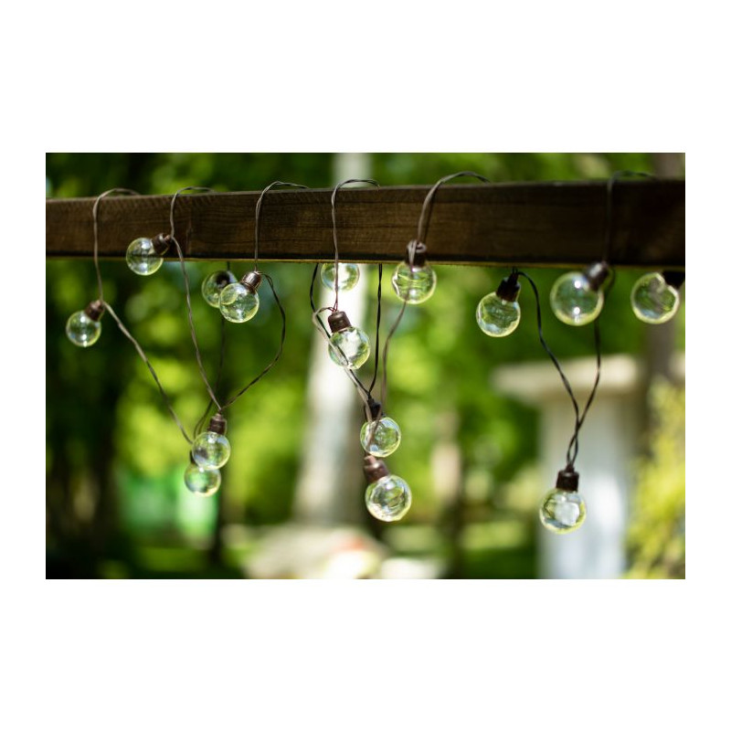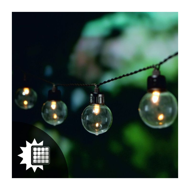 Solárne svietidlo GIRLANDA GLADI 20LED s celkovou dĺžkou 7,5m, s krytím IP44 vhodné do exteriérov, farba svetla teplá biela, čas svietenia pri plnom nabití 8h.
