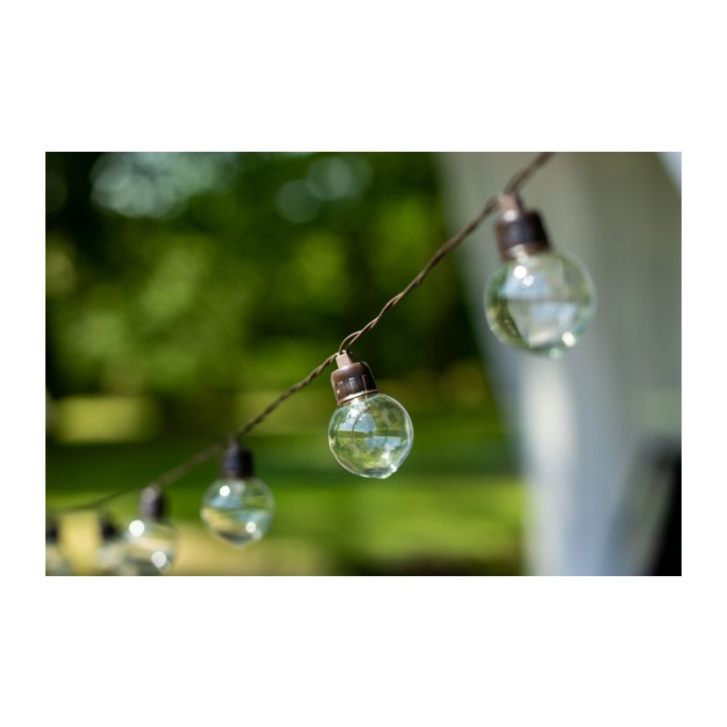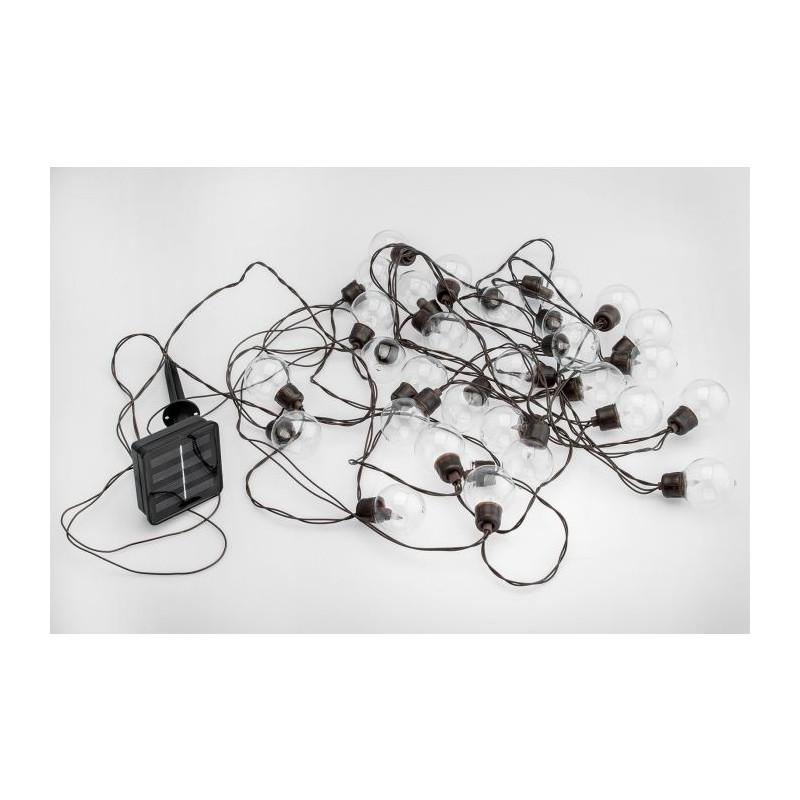 Solárne svietidlo GIRLANDA EREMI 20LED s celkovou dĺžkou 11,48m, dĺžka svietiacej časti 9,65m s krytím IP44 vhodné do exteriérov, farba svetla teplá biela, čas svietenia pri plnom nabití 8h.