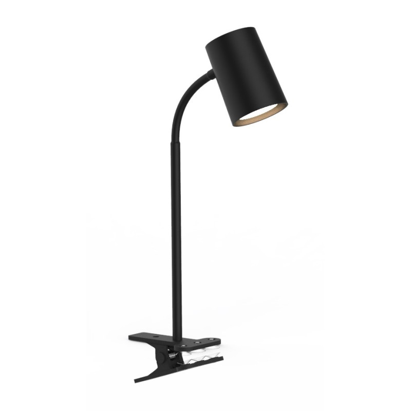 Svietidlo štípcové TUBA-K KM1931-CN, s päticou GU10 max. 9W v čiernom farebnom prevedení, určené pre osvetlenie interiérov, hlavne písacích stolíkov v cenovo dostupnej relácií.