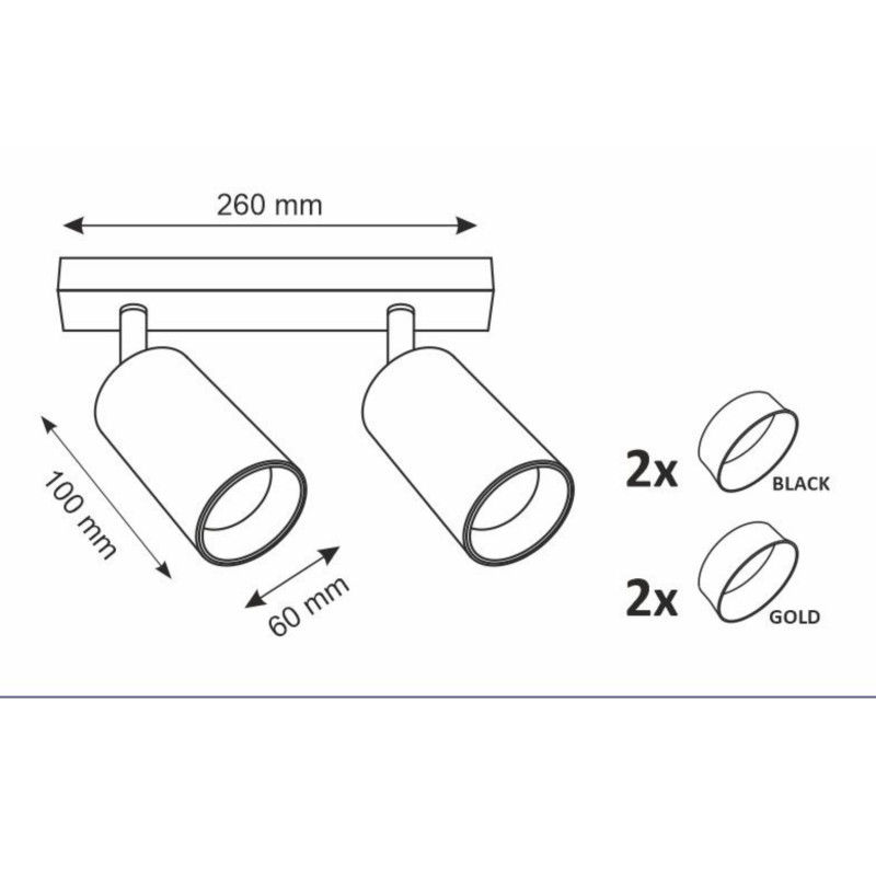 Svietidlo MARIBEL 2xGU10 s výkonom maximálne 2x10W, krytím IP20, v čiernom farebnom prevedení, v balení je čierny aj zlatý dekoračný prstenec, vhodné pre osvetlenie interiérov.