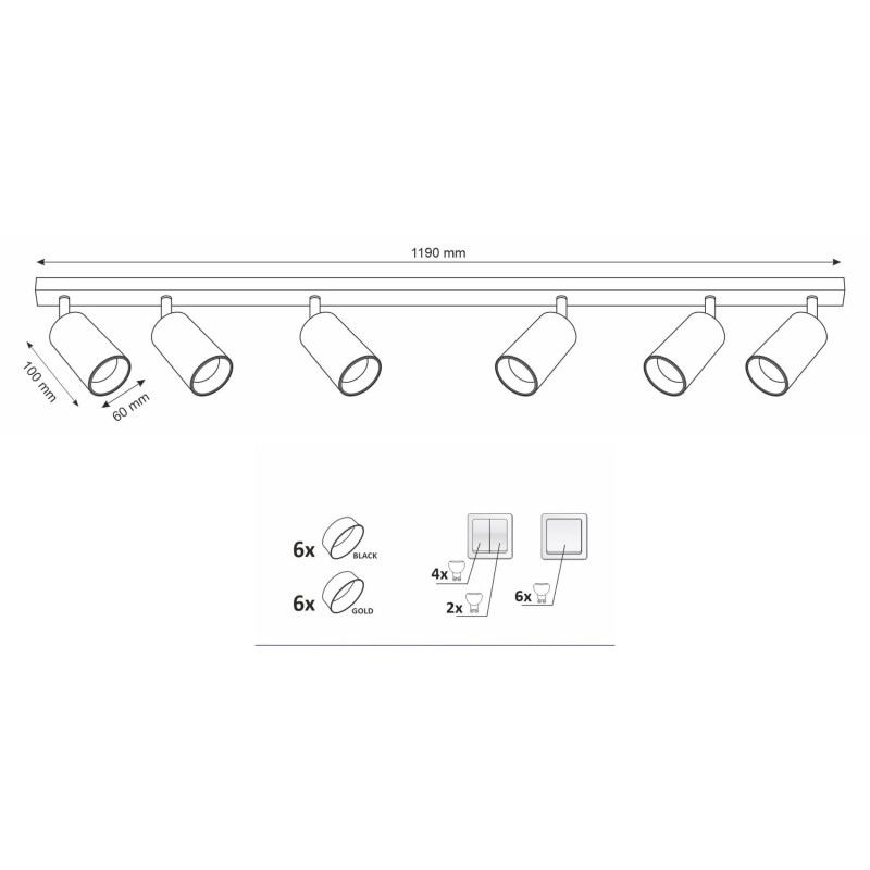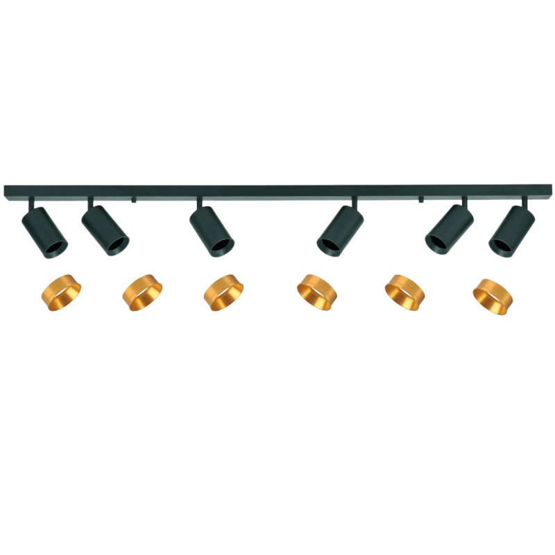 Svietidlo MARIBEL 6xGU10 s výkonom maximálne 6x10W, krytím IP20, v čiernom farebnom prevedení, v balení je čierny aj zlatý dekoračný prstenec, vhodné pre osvetlenie interiérov.