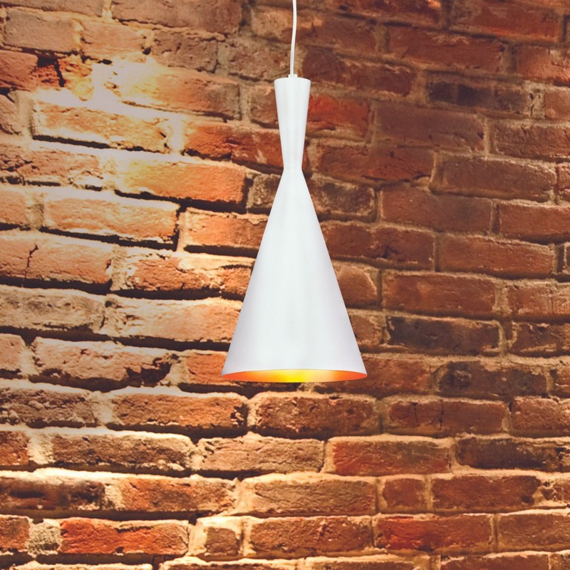 MODERN je séria závesných svietidiel s tromi rôznymi tvarmi tienidiel. Matný biely vonkajší povrch svietidla kontrastuje so zlatým, lesklým vnútrom, z ktorého vychádza výnimočne teplé a mäkké svetlo. Svietidlá môžu byť zostavené v ľubovoľných konfiguráciách v závislosti od vašich preferencií. Jednoduchý, minimalistický tvar svietidiel dokonale zapadne do interiérov zariadených v industriálnom, loftovom a modernom štýle. K svietidlu odporúčame dekoratívne žiarovky zo série FILAMENT pre nádherné prevedenie a dekoratívny charakter a LED svietidlá tradičného tvaru pre získanie maximálneho množstva svetla.