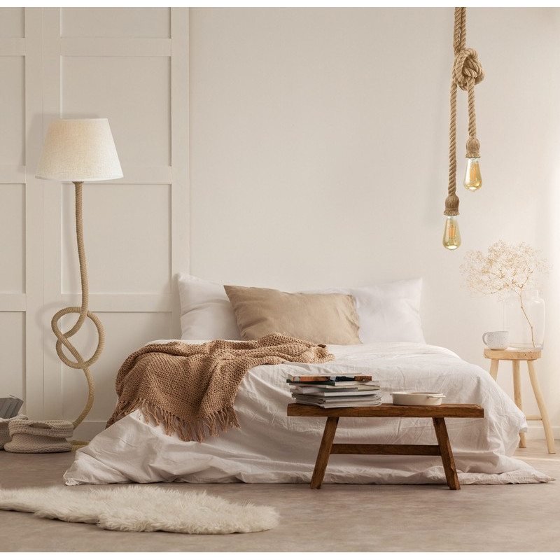 ROPE PRP je dvojitý popruh vyrobený z konopného lana. Svietidlo používa dva samostatné káble, ktoré sú navzájom spojené s viditeľným zdrojom svetla. Celé to vytvára mimoriadne zaujímavý efekt. Svietidlo dokonale zapadne do interiérov zariadených v loftovom, industriálnom a boho štýle. Kvôli exponovanému zdroju svetla odporúčame do svietidla dekoratívne žiarovky zo série FILAMENT pre nádherný povrch a dekoratívny charakter a LED svietidlá tradičného tvaru pre získanie maximálneho množstva svetla.