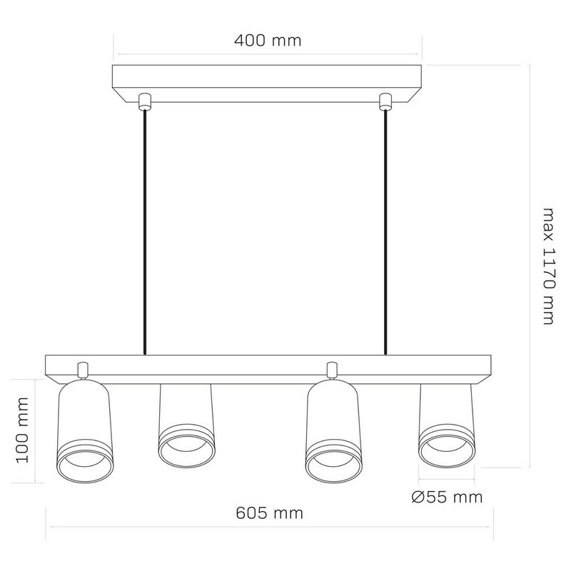 PARIS je štvorbodové, moderné závesné svietidlo s vymeniteľným zdrojom svetla, vyrobené z čierneho hliníka. Ozdobným prvkom je akrylový odnímateľný krúžok v každom ráme. Priložené hmoždinky a skrutky na montáž svietidla sú určené na pevné povrchy (betón, plná tehla). Na pripevnenie svietidla vždy používajte upevňovacie prvky, ktoré sú vhodné pre steny vo vašej domácnosti. Doplňujúce informácie: Svietidlo sa predáva bez svetelného zdroja.