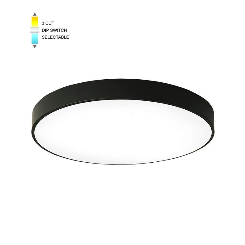 Svietidlo FINESSE D-45 D50 LED 45W CCT-DIP BLC vo farebnom prevedení čierna s nastaviteľnou farbou svetla, určené pre osvetlenie interiérov. Pomocou prepínača DIP môžete nastaviť farbu svetlá na tri hodnoty 3000K / 4000K / 6000K - teplá / neutrána / studená.