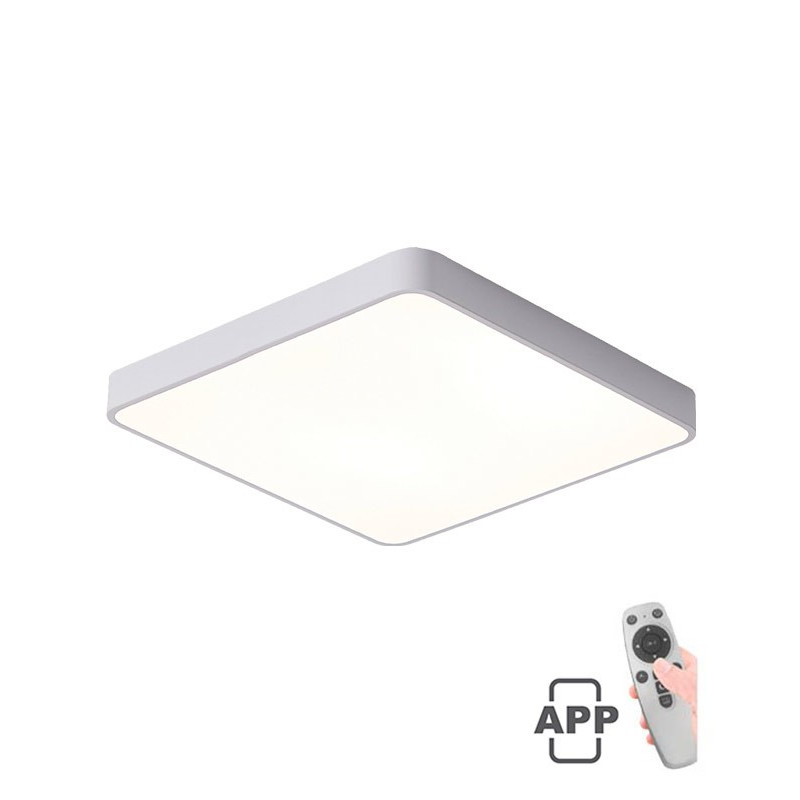 Svietidlo FINESSE S1-60 60x60 LED 60W DIM+MOB WHT v bielom farebnom prevedení s nastaviteľnou farbou svetla a svietivosťou, určené pre osvetlenie interiérov. Pomocou diaľkového ovládača alebo mobilnej aplikácie si môžete nastaviť farbu svetlá a svietivosť svietidlá.