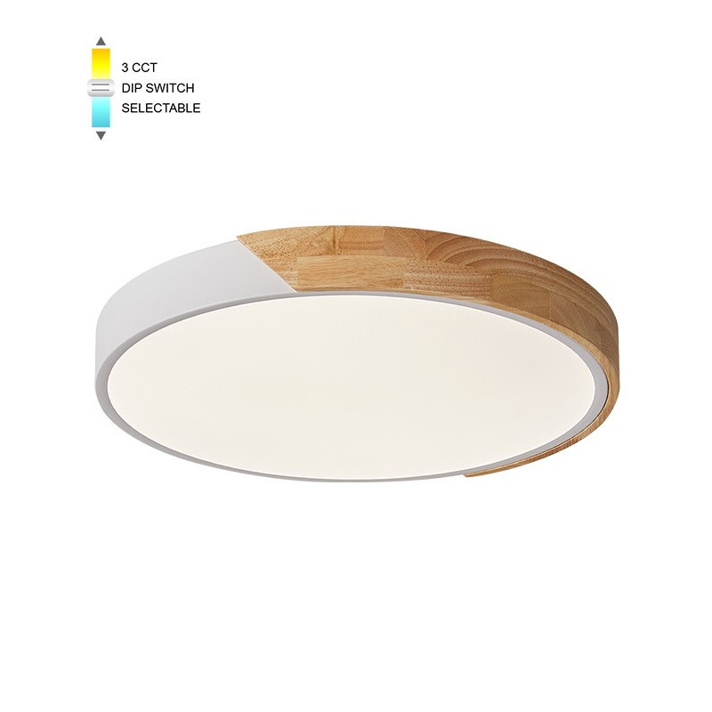 Svietidlo FINESSE R2-45 D50 LED 45W CCT-DIP WHT+WOOD vo farebnom prevedení biela + drevo s nastaviteľnou farbou svetla, určené pre osvetlenie interiérov. Pomocou prepínača DIP môžete nastaviť farbu svetlá na tri hodnoty 3000K / 4000K / 6000K - teplá / neutrána / studená.
