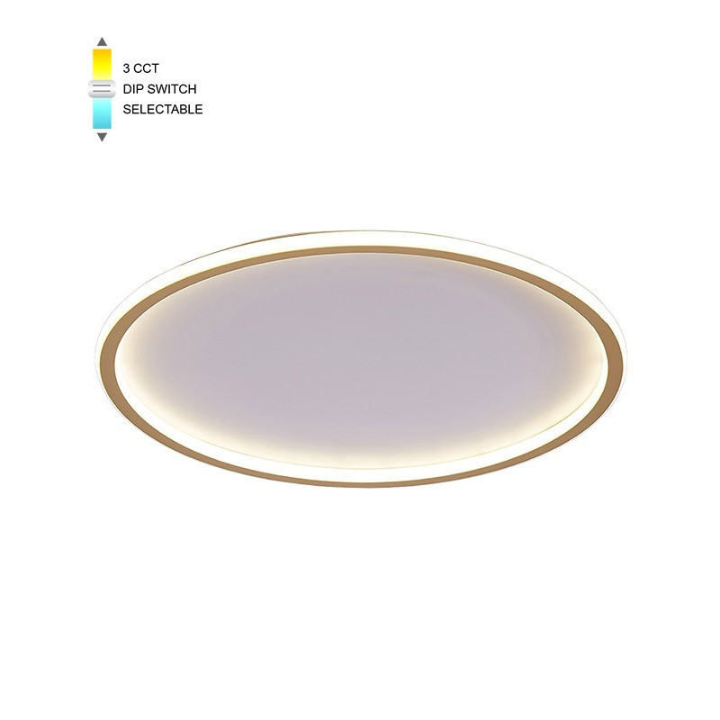 Svietidlo DISC D50 LED 46W CCT-DIP WHT+GLD vo farebnom prevedení biela + zlatá s nastaviteľnou farbou svetla, určené pre osvetlenie interiérov. Pomocou prepínača DIP môžete nastaviť farbu svetlá na tri hodnoty 3000K / 4000K / 6000K - teplá / neutrána / studená.