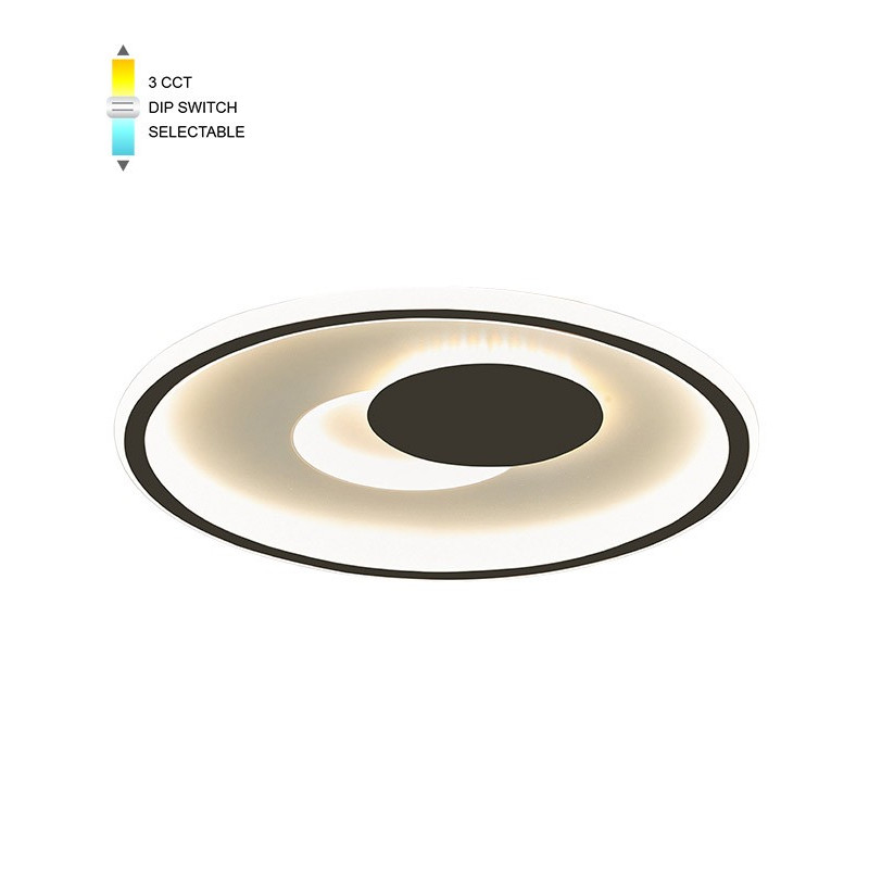 Svietidlo DISC D50 LED 46W CCT-DIP WHT+BLC vo farebnom prevedení čierna + biela s nastaviteľnou farbou svetla, určené pre osvetlenie interiérov. Pomocou prepínača DIP môžete nastaviť farbu svetlá na tri hodnoty 3000K / 4000K / 6000K - teplá / neutrána / studená.